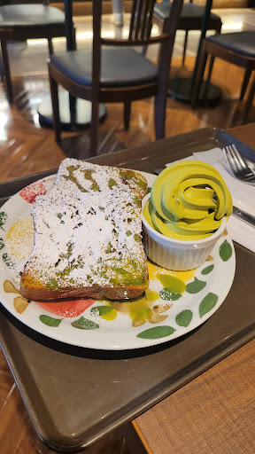 Read moreHighly recommend for matcha dessert lovers! This was one of the few cafes open early in the morning (8:30ish) and we ordered the Matcha Danish French Toast (the one in the photo) which came with a side of matcha soft serve for us to spread over the toast. Also ordered an iced uji matcha latte, which was very tasty and sweet, tasted like genuine matcha and wasn't too sweet, which I like. However next time I'll try ordering this latte with less or no ice because I felt like it took up a lot of the drink. Otherwise fantastic! We also ordered the chocolate and mochi crossaint (it was the first pastry when we walked in), it had a distinct but good flavor. Yuzu tea was also delicious, there's no tea in it but it was made out of real yuzu flavoring and...