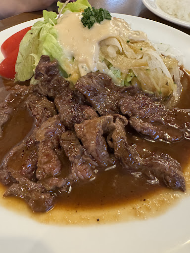 2024/10/05 久しぶりに訪れた 改めて良い店だとおもう 照焼ステーキのソースにご飯を浸してたべたら すっごくうまかった これドンブリにしてほしい 照焼ステーキ丼 行儀わるいけどうまいんだから仕方ない