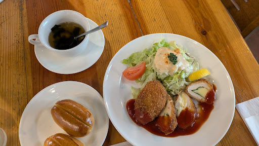 ミックスランチのB(クリームコロッケ1ヶとチーズチキンカツ3切れのランチセット)と食後のコーヒーを注文 クリームコロッケもチキンカツもサクサクで特にクリームコロッケが濃厚かつトマトソースでサッパリと食べやすくなっておりすごく美味しかった。 サラダの店を謳ってるだけあり2種類のドレッシングと新鮮なサラダはいくらでも食べれそうなくらいでサッパリ且つ旨みが強く最高だった。 パンかライスか選べる中パンを選択したがオーブンで温めてバターを挟んでいると思われ食感はパリパリとしていてバターもしっかり感じれて味はすごく良かった。ただもう少し温かいと良かったな…とそこは少し残念。 食後の珈琲はコクが深く酸味があまり無いタイプですごく好みの珈琲だったため頼んで正解でした。