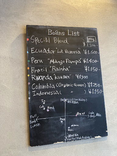 Read moreThis is the type of place where locals go for a good specialty coffee - it's a small shop that fits up to 16 guests and quite hidden. There's a daily board showing types of coffee beans and a graphic on how flavors will match according to fruity, acidity, full or light body levels - very easy to choose according to your preferences! I got their French press (first time in Japan I see a Bodum instead of a Hario), and was delighted with both experiences I had with them in different days. (Rwanda and Kenya selected coffee grains). Banana bread and sandwich breakfast set is definitely worth it - tastes like homemade (in case you're tired of Japanese white bread with butter, mine cheese and black olives had oatmeal and other whole grains). Will come back many times to enjoy the quiet...