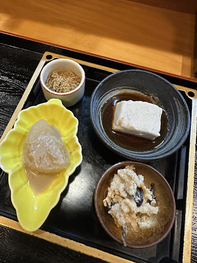 Read moreTraditional Kyoto food restaurant. Pretty expensive, 2.500 JPY/set and the food is nothing special. Maybe it is expensive because of all the design, because they gave us 4 small side dishes and, admittedly, some good-looking cups and bowls. But the quality of food is really normal. I can have much better food for that money, even have a steak in Tokyo. The (maybe) only pros of this restaurant is they have a quite big eating room, with comfortable area to...