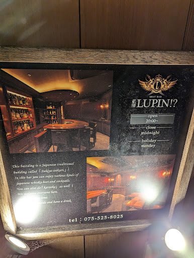 Read moreThis is a bit of a late review, I went to Lupin!? when I was in Japan back in early April. I stumbled across it wandering around the east side of Kyoto, and the staff were so welcoming and friendly even as a solo foreign traveller. Great atmosphere, cozy and filled with detail. They were able to give me local recommendations on Kyoto whiskey to try while I was there, and even though there was some language barrier they did very well at communicating with me and making my visit as friendly as possible! Only left early because I lost my hotel key and had to go find it... I love the Shot Bar Lupin!? Thank you for...