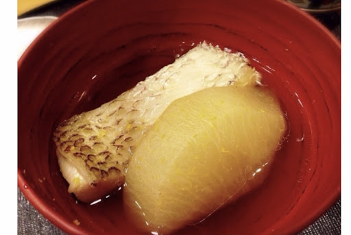 ●日本1のノドグロと大根の椀物(石川県能登) 今日1!! 脂の乗ったのどぐろが美味しいのは言うまでもありませんが、このお出汁の絶妙な甘さ具合は神業です! もぅ、ノックアウト~
