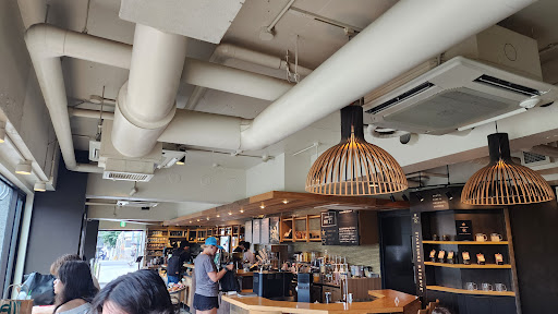 I was exhausted after a day of biking and 9 months of traveling in general and just wanted a quiet and relaxed place to sit. It took me half an hour to get here because you can't park your bike downtown and I ended up in a lineup of customers extending outside the store. Then all the seats were taken so I took a chair from a stack of chairs and sat down on this one (this is all outside on the deck). I had no table and there were two smelly trashcans next to me, far from what I had bargained for, but I was tired and just wanted to sit. Then two employees showed up and told me I was not allowed to sit on a chair without a table. I pointed out there was nowhere else to sit. They asked me to get out of the chair. I gave them my coffee (didn't want it anymore) and left. I have NEVER been treated this bad anywhere. So much for Japanese courtesy.