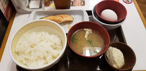 Read moreVery good place for quick and easy food and very cheap. I usually come here for breakfast in order to have the Fish set that comes with potato salad, miso soup, rice, raw egg, and salmon. I came in with two other people and our total amount came out to less than $15 CAD. In Tokyo, the staff can understand some English, but in Kyoto, the staff was a but more limited in understanding. It also depends on the staff. Also, if you eat at a stool, you pay at the cash. But if you eat at a table, they expect you to leave the money...