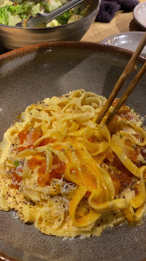 Read moreJust had our Christmas dinner here. We are international visitors and weren’t sure if things would be open on Christmas Day, so we asked a friend to reserve a restaurant for us. He selected this one for a 2 hour time slot and I’m so glad he did. Price was very reasonable, and the service and food was great. For starters we ordered the eggplant raw duck, both me and my wife’s first time eating raw duck, and it was delicious. Our meal also came with bottomless salad (yes all you can eat salad) and whatever dressing on that salad was so good, we ate 2 bowls of just that. For our mains we had the wagyu beef and bacon carbonara pasta. We actually enjoyed the pasta more - it had a raw egg on top sitting in a bed of black pepper which was just what we were craving. I liked that the wagyu had coarse sea salt you could sprinkle on yourself, and the (real) wasabi you could smear on the beef was better than the typical horseradish we get with American steaks. The atmosphere is nice (nicer than casual but not uptight and stuffy), and they even give you a blanket to put on your lap if you’re cold. My wife had a nonalcoholic cold pressed green juice with soda water that she enjoyed and I had the cold pressed red juice sour that was balanced and paired well with the meal. I’m so grateful to my friend for this...