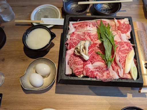 Read moreThis is a spacious restaurant on the 2nd floor super close to one end of the Nishiki Market and Starbucks. I came during their grand opening so they were running promotions but the regular prices seemed very reasonable. I ordered the regular sukiyaki set and it was enough to fill me up for lunch. The beef quality was good and I also liked the miso soup and pickled radish. The staff was very friendly and wanted to make sure we knew what we were doing 😊 I’d recommend coming to this restaurant since eating at Nishiki is somewhat difficult. You can always snack there after...