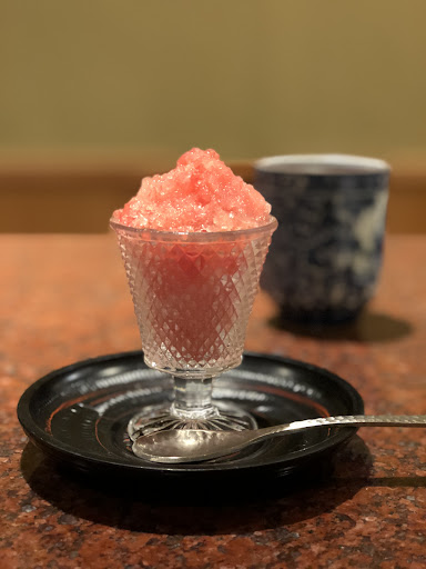 Tempuras: I must say the tempuras are spectacular. I believe the tempuras served in courses change according to the season of food and ingredients. Among the tempuras we were given, there were Hokaido fish, Shrimp, Stuffed Edamame, Stuffed Mushroom, Shrimp toast, Leek and more i cant recall. As the chef serve you one by one (Some were cut in half, some came in 3 pieces, some in 2) he well also explain what it is and with what you’re supposed to eat it with. They give you the tempura sauce of course but also 3 types of salt, white rice salt, green tea salt and soy salt. The combination of different tempuras with these different condiments / sauce were amazing. Amazingly by the end of the course, the wax / paper on my plate which they served all the tempuras were hardly soaked in oil. There was really close to no oil residue from the tempuras. For dessert, we were served Grapefruit sorbet and hot tea. Which was a good cleanse after all the food in course.
