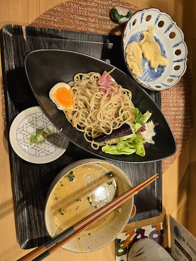 Read moreMy friends and I were looking for a place to shelter from the rain and eat after exploring Nishiki market. We came here and ordered the curry dipping noodles, grilled salmon, sushi platter and sea urchin sushi. We also got a bottle of warm sake. The curry dipping noodles were excellent. The curry is full of flavor and the noodles cooked to perfection. My friend was disappointed with the grilled salmon, as it was rather dry, as well as the sea urchin, which, while decent, was lacking in characteristic sea urchin strong flavours. My other friend was very pleased with her sushi platter, which was very fresh, and we enjoyed the hot sake very much, especially since it was served in a warming pot. The restaurant is tiny and can get quite crowded, so make sure to go early if you want to eat here. The service was very friendly and attentive, and the atmosphere was...