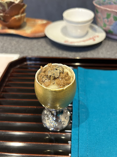 This was the best dining experience ever! The owner and his wife are such sweet people, very attendant and kind. Not only did we have the chance to paint our own matcha bowl, we also finished the dinner with drinking matcha from our own decorated bowl! The food was delicious and all the beautiful ceramics used were handmade by the owner, so talented! After dinner they invited us outside to enjoy the full moon together. Such a special and enjoyable moment!