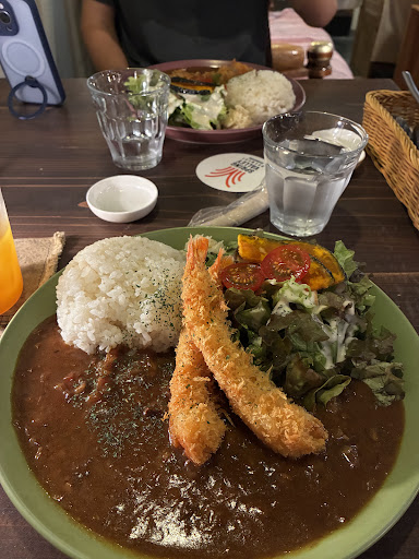 Read moreWe were craving curry and landed on this place as it was down the street from where we were staying. The place is kind of tucked away and easy to miss if you're not looking for it. It's tucked into a basement hence the name. The staff was friendly and the vibe was cool. It has a rock cafe theme to it with guitars hanging on the wall, classical rock playing in the background with a screen projector playing a concert. I'd easily bring a group of friends to share a few drinks here. Lastly, the food was pretty good. My brother and I cleared our plates. I ended up getting the curry shrimp. The curry was flavorful, and the shrimp was cooked perfectly. My brother ended up getting the pork curry and said the same. I highly recommend if you're...