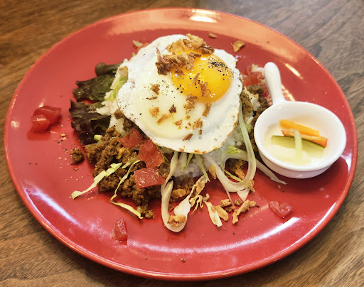 カフェだと思いますが、ご飯系が美味しかったです。焼きカレーは程よくスパイシーで卵とチーズでまろやかになっています。熱々でしたし、また立ち寄った際には頂きたい。 タコライスもひと口いただきましたが、美味しかったと思います。