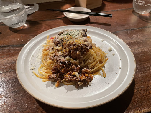 Read moreThis is a cute restaurant/bar located up a narrow set of stairs in a small alley - you might miss it if you're not looking for it. Luckily, I stumbled upon it one evening while visiting Kyoto. I had a lovely dinner here and amazing pasta. The staff consists of a chef, an assistant chef, and then there was another staff member who came in with fresh groceries every now and then. The chef and assistant made the drinks, pasta, appetizers, and took the orders and refilled the water and did everything with such speed and service as any high end restaurant. The small fridge in the corner was neatly organized. The drinks and appetizers were refreshing. I had the pike pasta with genovese. The pasta was cooked right past al dente and it came with a generous portion of pike with blistered cherry tomatos that cut through the creamy pasta sauce. I regret that I was too full to try dessert. I really loved my meal and I am thankful to have had to opportunity to eat there. I almost wanted to keep it a secret but it is too good of a restaurant and really deserves...