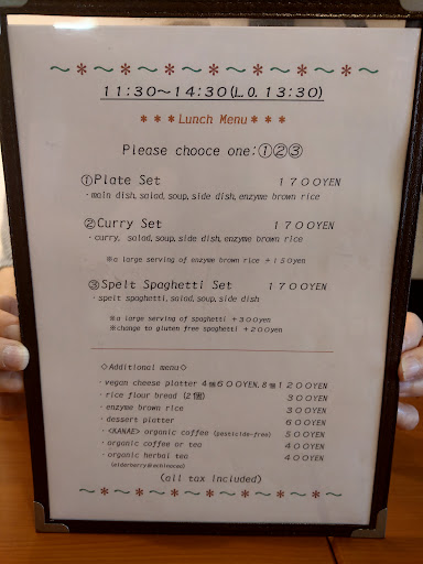 Read moreDefinitely the best value vegan restaurant meal I've ever had, and close to as good as meals I've paid 2-3X more for. We had the 4500 yen set meal which was about 12-15 different "dishes" over 5 courses: a small palate cleanser followed by a generous mostly cold platter, then a pasta course then a main meal then a desert platter. Plus tea or coffee. Our three adult carni kids ate every morsel (a ringing endorsement on it's own). This place is a must for any vegan/vegetarian visiting Kyoto, and a welcome interlude for any carnivores who just want a break from the constant meat skewers that seem everywhere. You won't be...