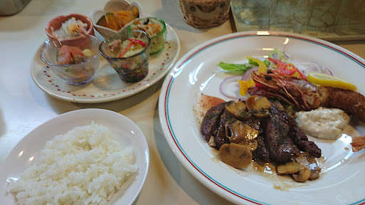 Read more出前しかしたことなかったですが、お店に行くとサービスがすごいです。 デザートやコーヒー、お菓子まで♡ おかずもじゃんじゃん持ってきてくれて味も文句ないです。 個人的に車海老のフライと、これまた車海老の入ったシーフードグラタン最高です。 お店のご夫婦も愛想よく優しい。 すべて手づくりでおやさいもたっぷりです。 家庭的な優しい味、お店、これか...
