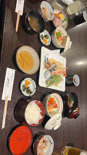 Many of the tables look out over a lovely Japanese garden. Lunches are delicious and reasonable! I had the set that allows choice of a mini bowl of udon or soba noodles plus choice of 10 bite-sized pieces of sushi for only ¥1800! Staff are friendly but could use a little bit of training. From a sanitary point of view, very clean - I have no complaints. But aesthetically, some decluttering would make this a much nicer...