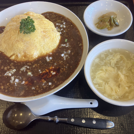 ▶ 麻婆天津飯 ふわふわの玉子がご飯を包み込み、その上にピリ辛の麻婆餡がたっぷりとかかった一皿!玉子の優しい甘みと麻婆の辛さが絶妙に合わさり、口に入れるたびに旨味が広がります!餡にはひき肉がしっかりと入っていて、コクと食べ応えが抜群!レンゲで掬うと、とろみのある麻婆が玉子と一緒に絡み、まさに至福の組み合わせでした!