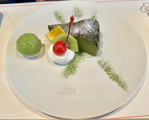 At the esteemed Yojiya Cafรฉ in the heart of Arashiyama, Kyoto, I found myself enveloped in an ambiance where traditional Japanese flavors meet the art of dessert-making. The matcha cheesecake, a harmonious blend of subtle sweetness and the distinct, rich taste of matcha, was complemented perfectly with a dollop of creamy matcha ice cream, creating a symphony of flavors that was as indulgent as it was balanced.