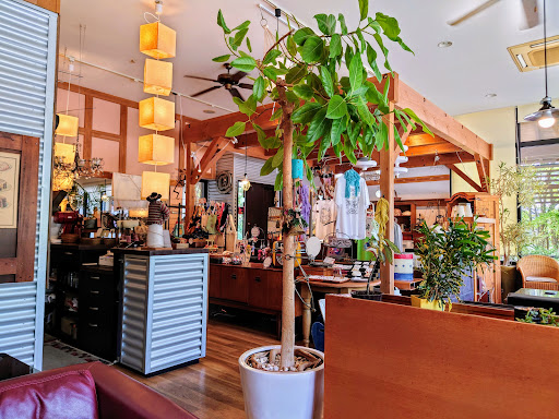 お店に入ると観葉植物が多くあり、お洒落な雑貨やTシャツなども販売しています。レイアウトにセンスの良さを感じました。