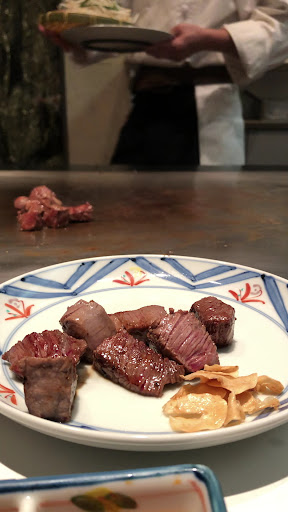 Read moreとても美味しくいただきました。海鮮最高!好き嫌いもあるでしょうが、ホタテ美味すぎ!野菜の時の魚の形をしたこんにゃくがとても可愛い。やはりメインは肉。柔らかくてほんとに美味しいです。外観がお洒落で、なかに入ると川をイメージしてるのかな?足元がガラス張りになっていて、少し怖いです。テーブルは個室になっていて、何処かの静かな山にでも来た気分にしてくれます。只、ステーキを焼いてくれる方が静かな方で、会話が控えめになってしまいました。ガーリックライスは少々味が濃すぎ、ご飯の時に味噌汁ってあんまり合わないような気がしました...