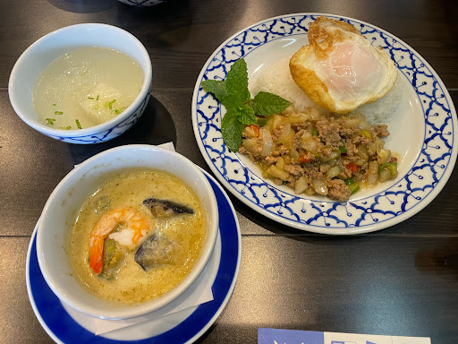 Read moreプレオープン中にランチで伺いました。 写真の中の1番上のガパオ&グリーンカレーランチ1000円。大盛り無料でしたのでお腹ぺこぺこだったので大盛りでお願いしました! 辛さも選べて星3位の辛さで注文。辛いものは割と好きです。