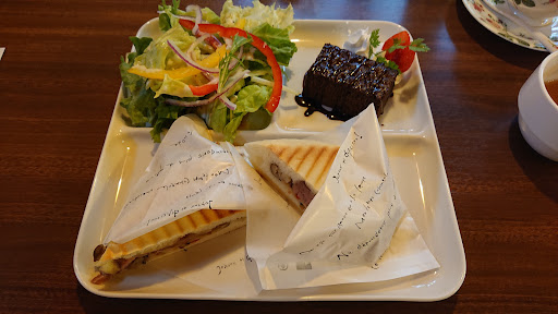 Read moreパニーニのお店でした。でも焼き立てパニーニに沢山の具が挟まれてて、食べ応えあります。ローストビーフと生ハムをチョイス。美味しかったです。セットメニューで注文したので、スープとパニーニのプレートにはサラダとチョコケーキ。単品での注文もありましたよ〜。期間限定でパンプキンのタルトがありましたので、追加注文。こちらも美味しかったです。このお店の面白いところは広いお庭があるのですが、ガーデン全体にハロウィンの装飾がされてました。可愛いものやリアルなもの😅季節によっては色んなお花が楽しめるのかなーサーと思います。また別の季節に行ってみたいお店です。ぐーちょきパスポートで50円引き、現金のみでの...