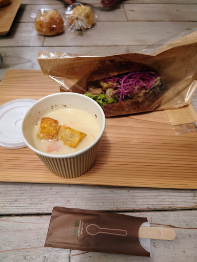 Read more2月のお店の回りに雪の残る北風の中、平日昼休み終盤時間パンのみの購入で訪れました。 扉を開けると目の前がレジなのですが、 いきなり「外でお待ち下さい!」と、強い口調で注意されました。 お行儀よく外で待っていますとそのレジで食事後の会計のお客と10分以上延々とおしゃべり花盛り。 寒い中、そこまで待たせるのならさぞかし美味しいパンであろうと思いつつ待ち続けました。 そのお喋りは私の次に訪れたお客が中に入って同じ注意を受けるまで続きました。 会話の弾んだ会計客がお帰りになりました。 「お待たせしました」もなくやっと中に案内され、こちらがパンのテイクアウトのみを告げると 「ピザ注文されないのですか?」と不思議な顔をされる始末。 あれだけお喋りで待たせてまた、ピザを焼いて待たせるつもりだったのでしょうか? 注文していたら、翔んだ罰ゲームでしたね。 やっとの思いで購入した肝心のパンですが、ベーコンエビなど昔あったフーケというパン屋さんを思い出させる懐かしい味わいでした。 仕事の合間のお昼休みに貴重な経験をさせていただきました。 ...