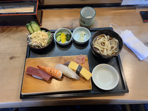 Read more和風の造りの良い感じのお店です。 メニューはうどんやそばにお寿司もあり、夏の暑い時期にはぴったりでした。