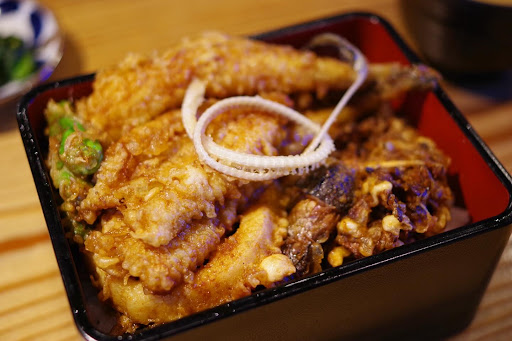 Read moreとても贅沢な時を過ごさせていただきました。 通常であればこのようなお店には入らない所でしたが、知人と贅沢な時を過ごすべく入店してみました。 お店の方も暖かく迎え入れてくれました。 席はカウンター席と個室風なテーブル席があり、今回テーブル席でお願いしました。 注文したのは、「逢とり縁丼(天丼)」です。 まず出されたのが、「きんぴらごぼう」「野菜スティック風サラダ」でサラダは粉末状になった「塩」で頂きます。 丼にかけられたタレは、濃くなく薄くなくの上品なお味で大変美味しく頂きました。 食後にはコーヒーも頂きました。コーヒーも美味しかったです。 ふと丼に目をやると、まだおろしたてなのか丼にお値段が付いていました。珍...