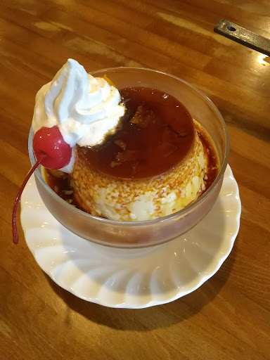 食後に自家製ジャンボプリンを注文しました🍮カラメルソースがほろ苦で、プリン自体は懐かしい固め食感。とても美味しかったです❤生クリームがもう...
