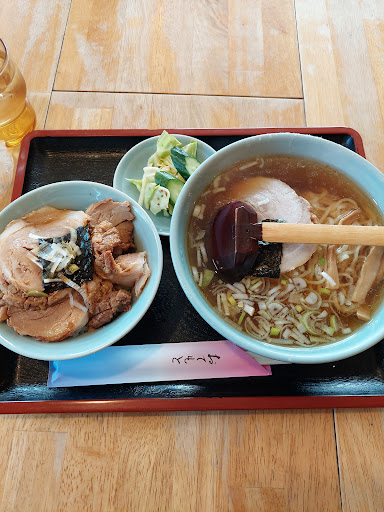Read more日曜の12時にお伺いして、ラーメンセットと味噌ラーメンセットと餃子を頼みました。駐車場がいっぱいだったので、待たされるかと思いましたが、店内が広く、座敷の席が沢山空いていたのですぐ座れて、小さい子どもが居ても安心でした。注文後も先に餃子が来て、食べている間にラーメンが来たのでほとんど待つことなく食べれました。ラーメンは手打ち麺とコクのあるスープで本格的でセットのチャーシュー丼はお肉が柔らかくてごま油の香りがして子どもがパクパク食べていました。セットにつくコーヒーが喫茶店レベルですごく美味しくて久しぶりに美味しいコーヒー飲んだねと話してました。手作りのプリンが美味しそうだったので次...