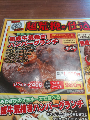 クーポンの熟成牛荒ひきハンバーグランチ240g 980円が880円 唐辛子ライス