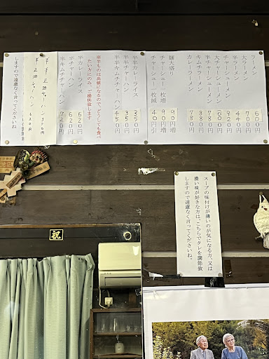 Read more普段は飲食店を満点💯にする事は殆ど無いのですが、この店は思い入れがあるので、星五つです。 以前はご夫婦でお店を切り盛りしていましたが、ご主人が亡くなられたあとは、奥さんと言うかおばあちゃんが独りで営業しています。 メニューはラーメン、チャーシュー麺、カレーラーメン。ごはんものはカレーと炒飯のみ。注文はテーブルの上にある紙に書いておばあちゃんに渡します。出来上がると声を掛けてくれるので取りに行きます。勿論お水はセルフサービス、食べ終わったらテーブルを自分で拭いて食器をおばあちゃんに言われた場所に置きます。会計も棚にある小銭置きに払うまるで無人販売のようなシステムです。