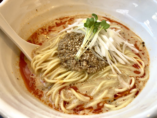 Read more仕事で当地を訪れた際に訪問。夜の営業始まってすぐ、17時過ぎで前客後客ゼロ。この日は担々麺「桂」を食す。830円也。 桂は普通の担々麺に対し、何やら使う辣油にこだわりがあるらしい。が食べ比べていないので違いは解らず。 スープは胡麻風味の効いた王道な担々麺のもの。合わせる麺は細いストレート麺で茹で時間もすこぶる短い。食感は少しボソッとした感じながらすぐにスープと馴染んで普通に美味しい。具材は挽肉と刻んだ長ネギ少々とビジュアル的には超シンプル、言い換えれば寂しい。 食べてみると、全般に味はシンプルながら隙も無く、極めて美味しい担々麺。個人的にはおとなしくまとまりすぎた感もあり、辛さブーストで卓上の調味料を利用。唐辛子ペースト的な物があって、これを付属のおさじ3杯くらい投入し、次に辣油を投入。ペースト状の辛子が結構辛味があって、これで程よい辛さに。 お店はカウンター5~6席にテーブル席も結構ある。店員さん2名で応対感じ良い。たまたまなのか空いていましたが、最寄りの前橋駅からだと結構距離あって、至近にけやきウォークもありフードコートや飲食店も沢山入っているので、営業環境としては結構難しいんじゃと心配してしまいます。 でも、味、接客と...