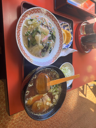 Read more満腹セットの半チャーハン・醤油ラーメンセットを食べました。量は半チャーハンではなくチャーハンでした🤣辛口コメントしますが、醤油は不味くはないですが薄い感じがするかな?って感じです。チャーハンは味はいいですが米自体の旨みがないのとパラパラではなかったのでそこがマイナスでした。決して双方不味くはないです。接客は感じの良い女性で好印象でした。 値段もこの量で800円は安いと思います。 中華丼も人気がありそうでしたよ。 正午少し前に到着しましたが過ぎるとあっという間にほぼ満席状態になるので少し早めがいいかもしれませんね。 気になった方は是非行ってみてくだ...