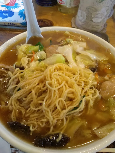 Read more群馬名物、唯一無二、銘店、などラーメンブロガーさんやYouTubeでもとても評判の高いお店。今回初訪問。 昭和のオヤジギャグを掲げるこちら1100開店。古民家風の味のあるお店の前で15分前からポールポジションで開店待ちしておりますと、ムロツヨシ似の店主さんが出てきて早めに開店して頂きました。 こちらが勝手に早く来てるのに「お待たせしてスミマセン」とめちゃ丁寧な接客。ホールの女性店員さんも明るく丁寧な接客。 外観に負けない古民家風の店内はカウンター主体の小上がり席もあるレイアウト。カウンターの端を確保してラーメンを待ちます。活気ある店内にこだまする、野菜炒めの中華鍋を振る音。心地良いサウンド。 着丼したラーメンはお味が醤油、塩、味噌から選べて麺も縮れ、極太、好みにカスタマイズ 可能。トッピングも豊富。 わたしは、醤油、極太麺で頂きました。 野菜たっぷり、広東麺風味のビジュアル。だがトロみのない中毒性のあるスープはごはんとマッチする逸品。野菜のエキス?が溶け込んでめちゃ美味しいです。 極太麺とスープをごはんに載せて頂くと悶絶級の美味しさ。 帰る頃には店内待ちも発生していました。人気店ですね。美味しいラーメンも丁寧な接客も好印象...