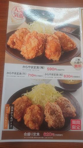 Read moreコロナ自粛で月2〜3ペースからの久し振りのからやま。今まで以上に店内が油臭かった。揚げ物食べに来て早々に油にやられ始めてからの「梅」。あれっ?キャベツ減ったなが第一印象。気休めにキャベツから食べるので気になった。それにしても、店内、油臭すぎ。塩辛をのせたご飯も箸がすすまず。唐揚げも早々に受け付けなくなってしまい、連れに食べてもらった。塩辛をのせてしまったご飯を何とか口に運んだ。唐揚げもいつもより古い油の味がしたし、換気扇も掃除してないのかな?しばらく、からやまは良いかな。唐揚げ大好きで食べたくなったら来てたけど、こう、油でやられちゃうと、足が向かなくなる。テーブルもベタついてたから、何かあったんだろうな。久し振りのからやまは薄汚く感じた。 またまた久し振りの訪問。キャベツ、本当に減った。気のせいなんだろうけど唐揚げまで小さくなった気がした。テーブルのベタベタは減ってた。前回よりは...