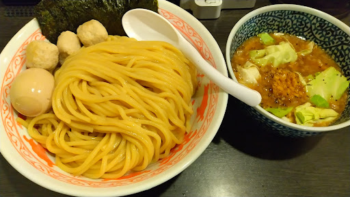 Read more初めて伺いました。お昼前に行きましたが、スムーズに入れました!! 入口に券売機があるので、食券を購入し、席に着きます。私はあまり一人ではこういうお店には行かないので、勝手が良く分かりませんが、券売機の隣にメニュー表があり、それを見て購入する事も出来ます。私はつけ麺が好きなので、”野菜たっぷり”と言うよりは、シンプルなラーメンを選びます。ここでは2種類の味のスープが有りましたが、多分定番は魚粉を使った濃厚なつけ汁。もう一つは、サッパリ系の酸味の効いたつけ汁(東池袋店にある味)だそうです。←この表現、知ってる人にしか分からない例えだと思うんです!! 初めて来た方や、東池袋店に行ったことが無い人には分からない。もう少し、分かりやすい様に表示してほしいです。たまたま一緒に行った相手が知ってたから良かったものの、ちょっと不親切。 頼んだつけ麺は美味しかったです😋 でも、しいと言うなら、酸味が好きな人には物足りない。なので、テーブルに置いてあるお酢を足すと良い感じのスープになります👍 餃子もラーメン屋さん独特の味で美味しく頂けました🥟 一人では中々行きませんが、濃厚・太麺・野菜が好きな人にはオススメ...