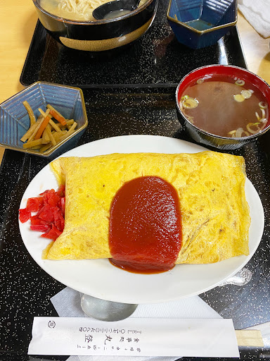 オムライス大盛を頂きました。普段から結構食べる方だと思っていましたが、さすがに最後はちょっと苦しくなるほどでした。 お店は結構席があるので、それほど混雑している感じはしませんでしたが、主にサラリーマンが多く、しかも常連客が多いところ、長く愛されている感が伝わってきました。 さて、オムライスは卵がいわゆるふわトロではない、家庭的なタイプですが、具材にナルトや豚肉が入っており、オリジナリティがありました。ただチキンライスの胡椒が若干前面に出ている感じが、気になりました。 次回はカレーもしくはかつ丼、たぬき丼、生姜焼きなど食べてみたいと思いました。