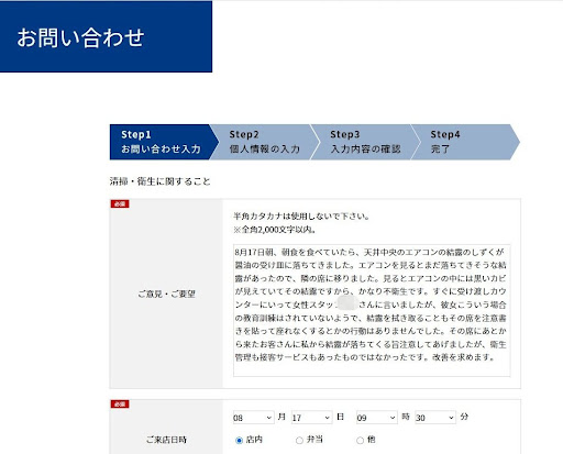 このことに対して返答することはそんなに時間がかかることなのでしょうか?返答しかねることなのでしょうか? 私は謝罪の言葉など求めていません。私は速やかに、私やその他のみなさんが、衛生的で安心して食事ができる店にしてほしいと願っているだけです。