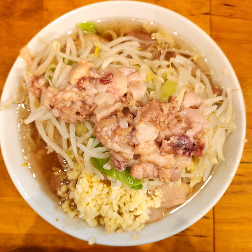 Read more【初訪問しました】 駐車場🅿は無いので、周辺のコインパーキングを利用します。G系ラーメンを知ってから、インスパイア系はけっこう食べましたが、この度ついに、㊗初の直系店訪問です🎉オープン前から情報は得ていましたが、激混雑を避けていました😅12時半頃に訪ねると、まさかの外待ち無し😲最近はだいぶ落ち着いたのか...❓ ■入口すぐ右手の食券機で食券を買い、満席であれば奥にある椅子で待つ。カウンターが空いたら随時座っていく。遠い位置の座席が空いたかどうかが分かりにくいけれど、そういう時は店主さんが教えてくれます⭕カウンターの椅子、高っ...💦脚が短くて床に届かぬ(笑) ■提供前に店主さんから「ニンニク入れますか❓」と聞かれるので、TPコールを返しましょう。私は野菜ニンニク少なめアブラにしました。