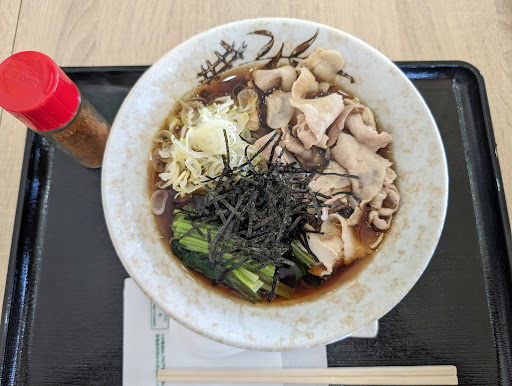 Read more道の駅ふじみの隣にある温泉施設のレストランです。温泉を利用しなくても食事できます。テーブルと座敷があり、席数に余裕があります。入り口で靴を脱ぎスリッパに履き替える等します。 注文した蕎麦は、肉蕎麦(930円)です。 麺2倍量を200円で選択できるオプションもありますが、注文したのは普通盛りです。 麺が細いせいか、思ったより量があります。夕飯が量が多くなる予定だったので、2倍はやめときました。 豚肉とほうれん草と海苔と長ネギが入っていて、私の好きな組み合わせです。 麺2倍量について質問したところ、厨房の女性が気さくに応じてくれました。食事を終えたあとも声をかけてくれて、気分が和みました。 また食べたいな、利用し...