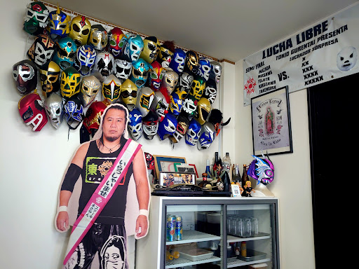 前に小耳に挟んだことがあり、妻と二人でいざ参戦♪ 11:45オープンと聞き、ほぼ時間ぴったりに到着すると、既に先客が一人。 店内は特大メキシコ国旗?とプロレスラーの写真で溢れ、テレビもプロレスの試合が延々と流れている感じ。 店長はいかつい感じで元プロレスラーのようだ。 俺、全くプロレス知らんけど平気だろうな…と不安がよぎる。笑
