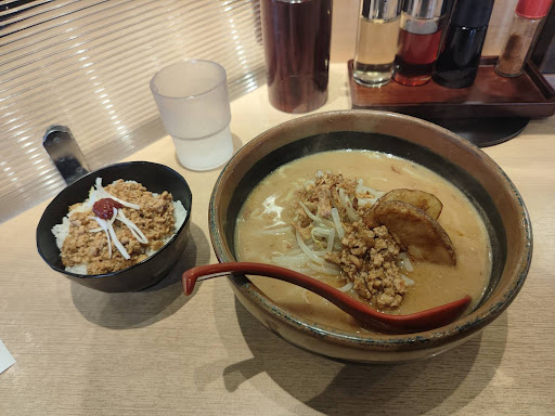 肝心な味の方は、コクのある味噌、とても美味しい、ご飯のそぼろもこれまた旨い。行儀悪いがらーめんのスープを少しかけてご飯を食らうと更に旨かったです。