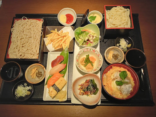以下、状況。 休日お昼時に法事(9名)で利用。 事前に電話で席とメニューを予約した上で来店。 席通されたあと10分ほど放置。何の説明もなし。店員さんが来る気配もなし。 どうしたらよいかわからず、ひとまずドリンク注文するためにピンポンで店員呼び、一通り注文を伝えた後、真顔で「タブレットからは注文しないんですね」とだけ言われた。(タブレットは注文者の反対のテーブル端に寄せられてて気づかず) 「気づかなかったとはいえ、すみません」とお詫びしたが、無反応。 「失礼します」などの挨拶もなくフロアに戻っていった。 伝票にメモをとっている様子だったが反応的にオーダー通ってなさそうだったので、タブレットの注文履歴確認したところ、やはりオーダー通ってなく、結局自分たちでタブレットで注文した。 料理提供については、埼玉や東京の他店舗を利用した時には「みなさんお揃いですか?」や「順番にお出ししますね」などの声かけがあったが、こちらの店舗では放置。勝手がわからないので母がフロアにいる店員に「お料理って…」と聞きに行くとぶっきらぼうに「順番に出すんで待っててください」とだけ言われた。 提供する際には袴の裾が何度も親戚の最高齢者の顔や肩を何度も掠めたが「失礼しました」などの言葉がなかった。 靴を脱いで利用する店舗なのに、ドリンクバーコーナーの床は飛び散った水やジュースでビチャビチャになっており靴下が濡れた。 予約してたメニューには「選べる麺料理」と記載されていたが、何も聞かれず勝手に蕎麦が出てきた。(アレルギーの人がいたらどうするのか…)