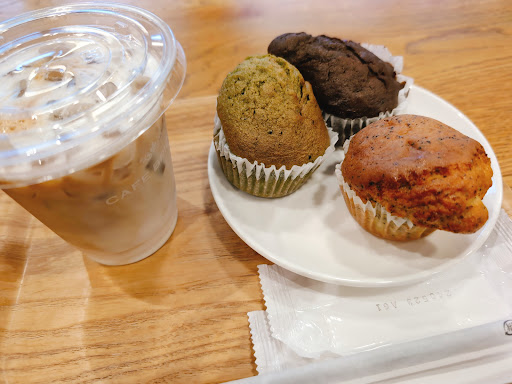 カインズホームの観葉植物売場の一角にあります。ブレンドコーヒーのレギュラーとマフィンのブレーンとフォンダンショコラを注文。500円ちょうどでした。フォンダンショコラの中はとろけるチョコが入っており甘さもちょうどよくコーヒーに合う美味しさでした。観葉植物とおしゃれなテーブルやイスもよかったです。カインズなのでもう少し価格を下げるか量を大きくして欲しいサイズですね。セーブオンの時の価格帯が記憶にあるのでそんな感覚になってしまいます。場所代と考えるべきかもしれません。フリーWi-Fiがありますがなぜ...