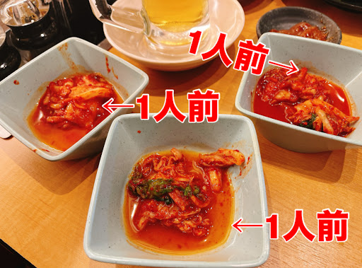 昼の時間帯を避けようと15時から利用したら、サービスは変わらず提供遅く、例えばキムチ3つ頼んだら残飯の量×3で来た。