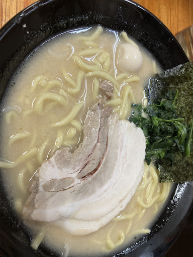 Read more前橋駅南口から出て道路向かいにある。 家系とは?と調べてみると、豚骨醤油でしょっぱ旨。という感じらしい。 駐車場は併設されておらず、契約の駐車場を利用する様子。詳しくは店員まで 入店。人気店のようで、13:30を過ぎていたが、待たされる。 席はカウンター式のみで、食券式。ネギラーメン中もり(1000円)を選択。味は醤油・塩から選べ、味噌・からとん?味へは追加食券(100円)。味噌好きの私だが、ここは家系とのことで、醤油をチョイス。 席に座ると、麺の種類(細麺OR中太麺)、固さ、濃さ、油の了解を聞かれる。 中太、固め、油少な目でオーダー。 着丼までは早い印象。 どっさりのネギ、ウズラの卵、ほうれん草、海苔、大きめのチャーシュー1枚が乗っている スープは鶏油が香り豚骨ベースだが、嫌な臭み等は感じない。一口啜ると、豚骨ベースの旨味をガツンと感じる。そして確かにしょっぱい。 程よい固さで食べ応えもありつつ、なめらかな印象で、麺自体の味、香りの主張は強くない。特徴として、短めの麺を使用しており、麺を途中で啜り直したり噛みきったりする必要がない。 チャーシューはしっかり厚みがあり、少し固め。 食べ進めて感じるのは、旨いが、しょっぱい! 味変調味料は、卓上に、辣油、酢。 ニンニク、刻みタマネギ、豆板醤、おろし生姜は店員に声かけで持ってきてくれる。 味リセット要員としてタマネギを投入。 タマネギの甘味と香りで一瞬リセットされるが、やはり直ぐに口のなかがしょっぱくなる。これはライスとセットでおかず的に食べるのが正解なのかもしれない。 知らずにトライされる方は、その点だけ要注意...