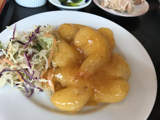 この値段でこの量は(舞鶴としては)お目にかかれない 味も美味しい 油淋鶏定食を頼んだ メニューにあるどんぶりはラーメン 思った以上にボリュームがある メニューにある青緑の物体は何かは不明 別メニューでラーメン+ご飯もののセットもあったが、定食のほうが断然いい! ラーメンがみそ汁に変わっても定食と言える満足量だった