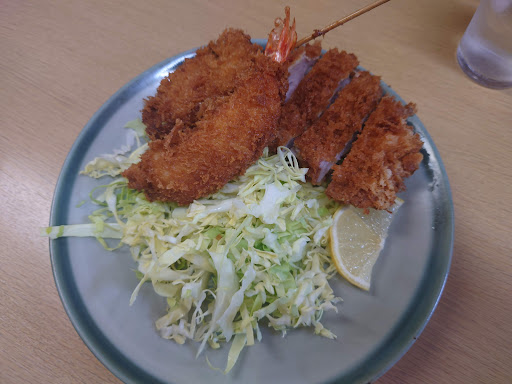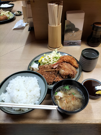 Read more開店してまも無くに行きましたが、すでに満席。10分程度待ち座れた。待っている間に、注文を聞いて頂いたので、席が空くまでに料理作りを始めろようだ。注文はヒレとロースの定食。同行者と分けあって食べたが、思ったよりボリュームが有り、美味しくて腹一杯になった。ソースはウスターソースに近いが、とんかつにマッチしており、キャベツにはマヨネーズ。それに豚汁とお漬物。ご飯も大きめの器で炊き立て。 カツは厚みがあって大きさも男の手のひらぐらい。 期待以上でした。 また行って、違うメニューも食べてみたいと思った。 ただ、車で行くと駐車場が3台分しか無く、すぐに一杯で近くにも止める場所が無く四苦八苦。 何とか歩いて7〜8分のところに有料駐車場を見つけることができたが、初めて行...